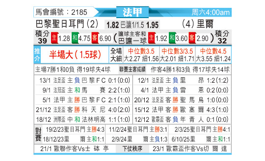 足彩不死鸟26003足彩推荐:蓝月亮大战蓝军,巴黎球