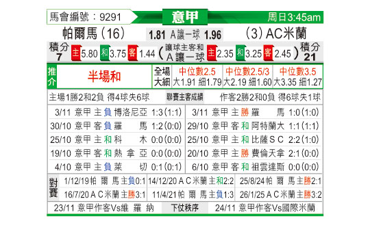 意甲:羅馬食硬蒙沙 半場「主勝」值博_星島日報